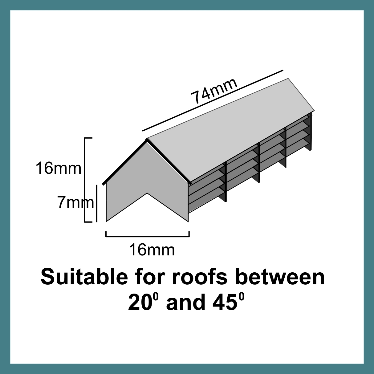 These new 00-scale roof vents are suitable to fit to any roof between 20 degrees and 45 degrees. If necessary the ends can be cut with a craft knife to change the angles for a perfect fit.