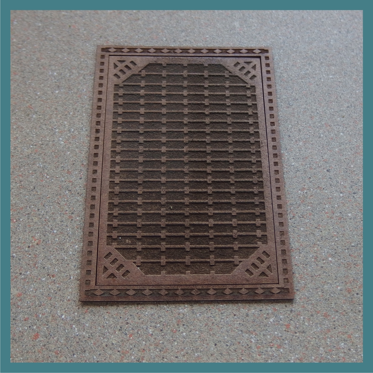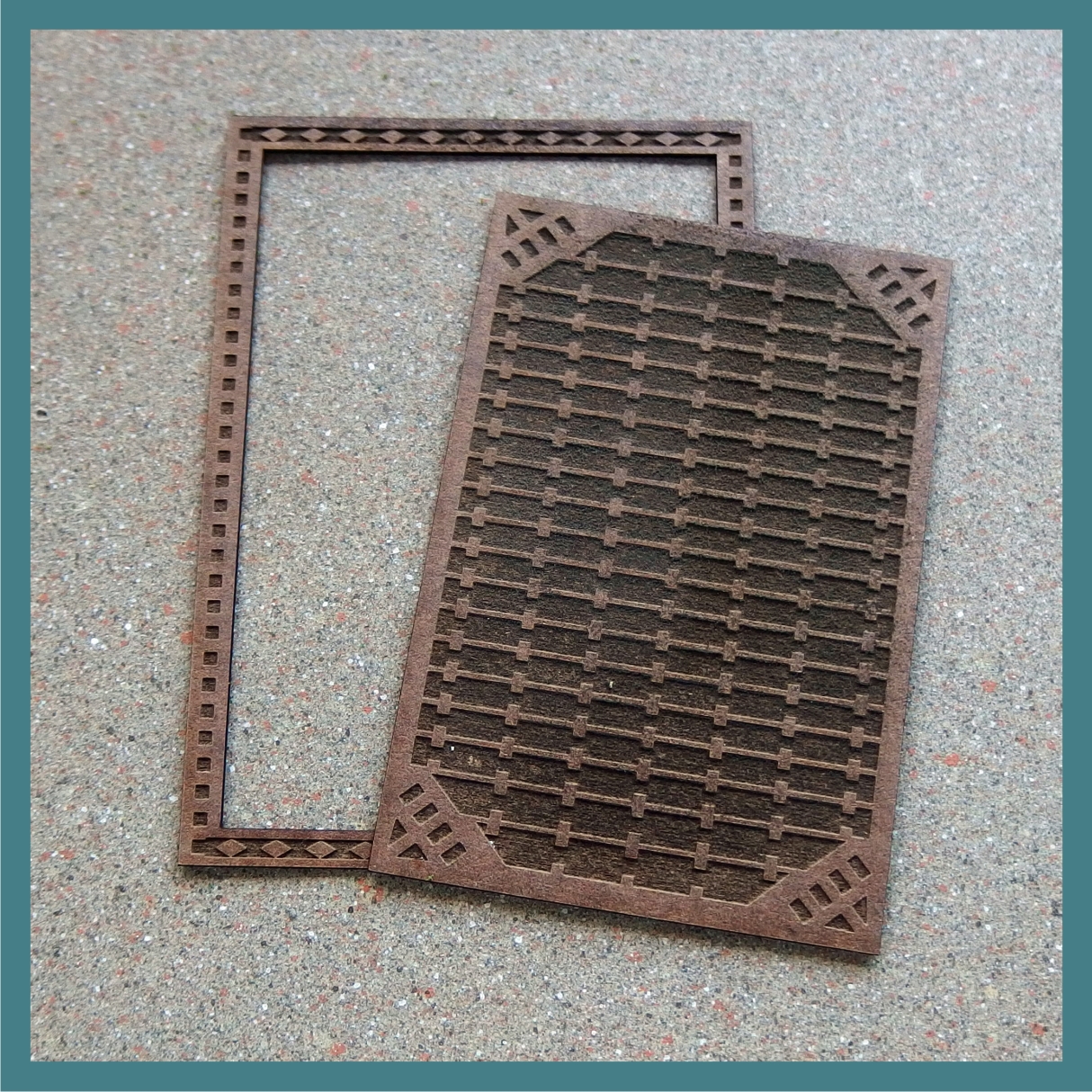 Laser-etched in two parts from 0.9mm brown laserboard. Overall dimensions, including outer frame, 64.5 x 91.5mm with the inner weigh bridge platform being 55.5 x 82.5mm.